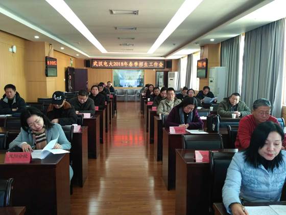 1月10日上午,武汉电大召开了2018年春季招生工作会。副校长王路群、教务处处长肖素美、副处长李维六、李洪斌以及直属开放学院、新洲分校、蔡甸分校等17所分校(教学点)的校领导和招生负责人参加会议。