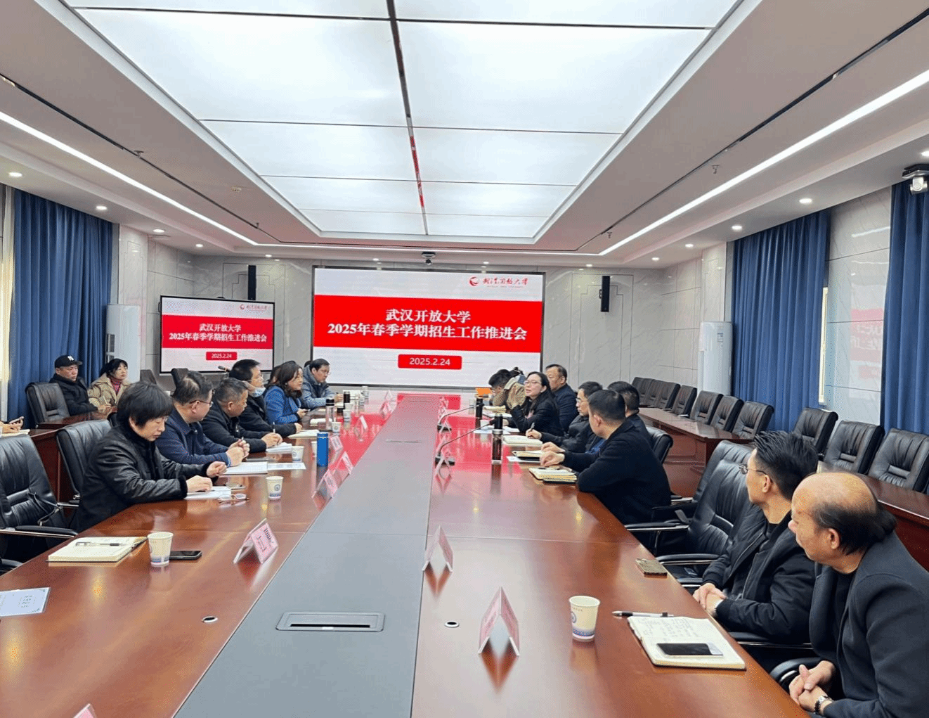 2月24日,武汉开放大学召开2025年春季招生工作推进会。武汉开放大学校长蒋兴鹏、副校长王中林出席会议,各分校(学习中心)负责人及相关人员参会。
