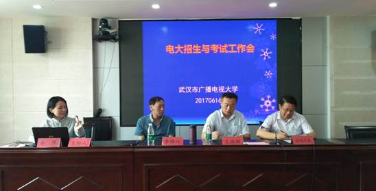 6月16日上午9:30,武汉电大招生与考试工作会议在市校二号楼8楼会议室召开。副校长王路群、教务处处长李萍、副处长李维六等23所分校(教学点)的校领导和招生、考务部门负责人共60 人参加会议。