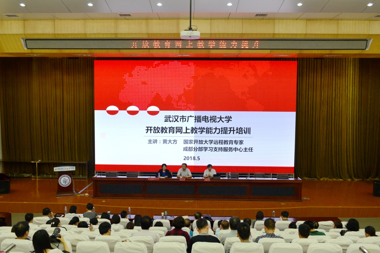 5月23日上午,开放教育教师网上教学能力提升培训班在光谷校区学术楼1号报告厅开讲。此次培训由国家开放大学成都分部学习支持服务中心主任黄大方副教授担任主讲,王路群副校长出席并致辞,全体课程责任教师、专业责任教师,各学院分管教学的院领导及教学管理人员,各分校、教学点教务主任及辅导教师代表等一百二十余人参加了培训。培训会由电大教务处肖素美处长主持。