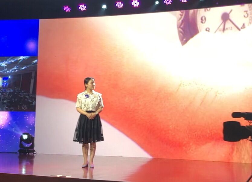我校的22号选手李响,用英语饱含激情的讲述着自己的励志故事,在提问环节中她沉着冷静,对答如流,吸引了外籍评委的关注和点评。
