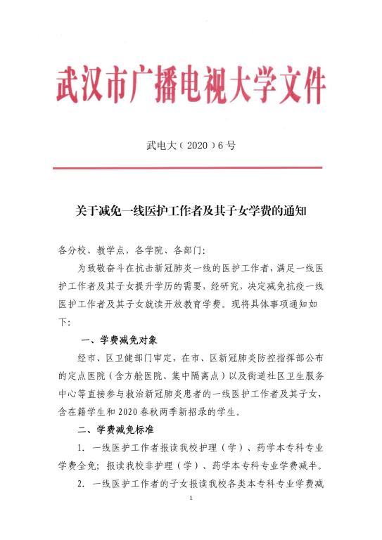 关于减免一线医护工作者及其子女学费的通知
