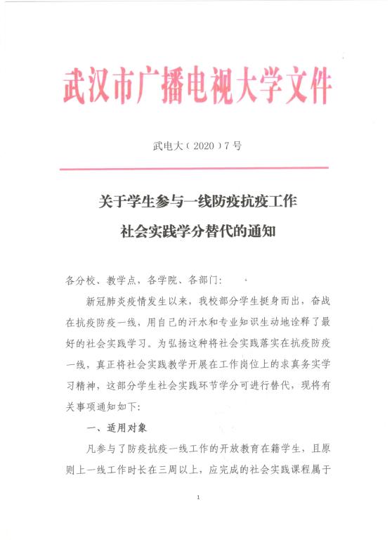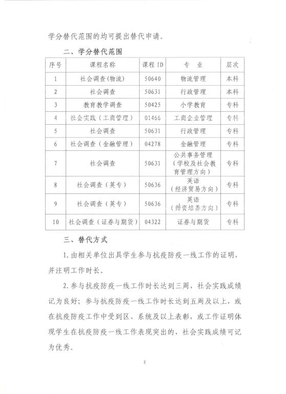 关于学生参与一线防疫抗疫工作社会实践学分替代的通知