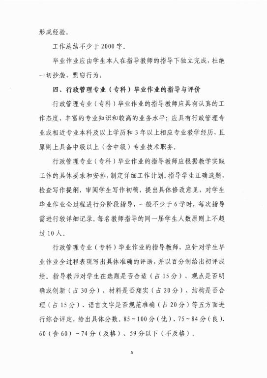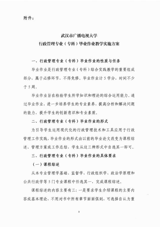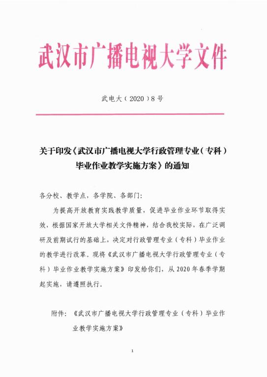 关于印发《武汉市广播电视大学行政管理专业(专科)毕业作业教学实施方案》的通知