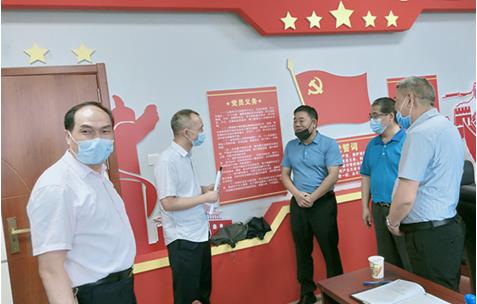马蜂书记等与刚刚完成答辩的朱寿俭(左二)、刘雄光(左一)学员亲切交流