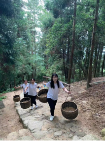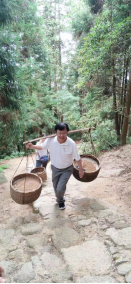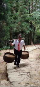 在崎岖不平的羊肠小道上,体验挑粮上山