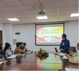 纪检委员蔡俊同志为全体党员带来题为《学党史,讲廉洁,争当廉洁从教表率》党课宣讲活动,生动详实的内容让大家体会到必须筑牢反腐防线,吸取他人教训,保持清醒头脑,时刻要以教师职业道德规范严格约束自己,在工作中做到廉洁从教,保持廉洁自律,自觉抵制不良风气,争做廉洁从教表率。