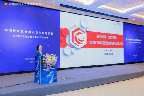 2025 年 11 月 25 日,国家开放大学出版传媒集团主办的 “继续教育教材建设与应用培训班暨 2025 年开放教育教材交流活动” 在北京隆重举行,武汉开放大学教务处、开放教育学院、新洲分校相关负责人等组成代表团赴京参会,与来自全国开放教育体系的两百余位同仁共探教材建设新路径,不仅凭借突出表现喜获两项荣誉,教务处处长邹莉还代表学校分享了 “职继融通,数字赋能” 的特色实践成果。